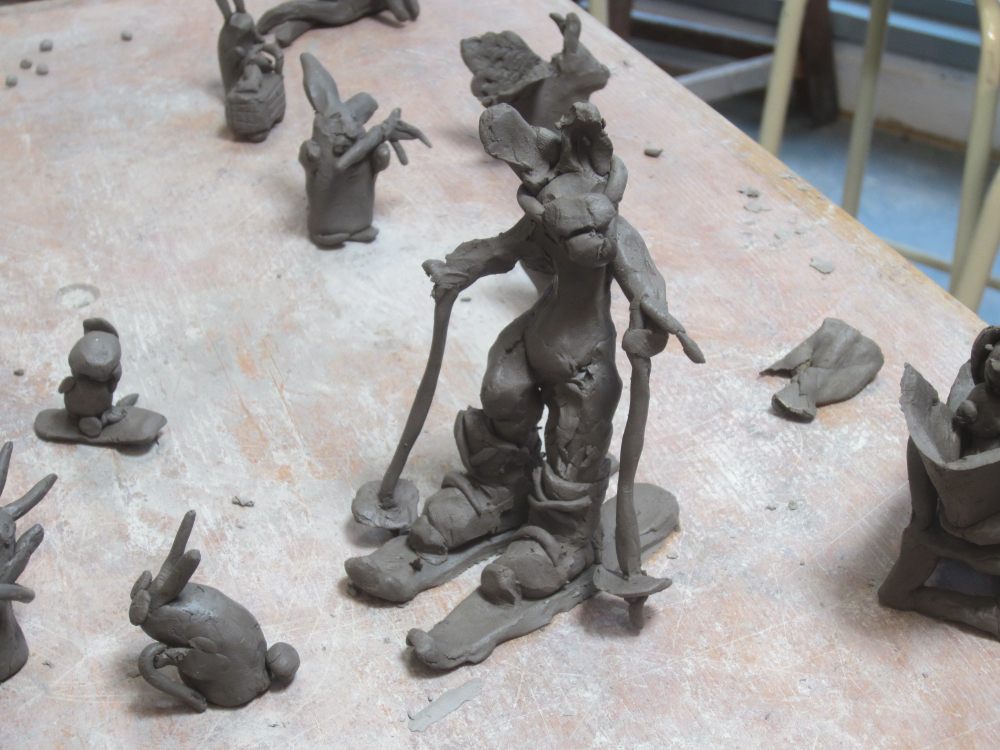 Une figure humaine s'obtient ainsi par simples pliages du colombin selon les articulations du corps.