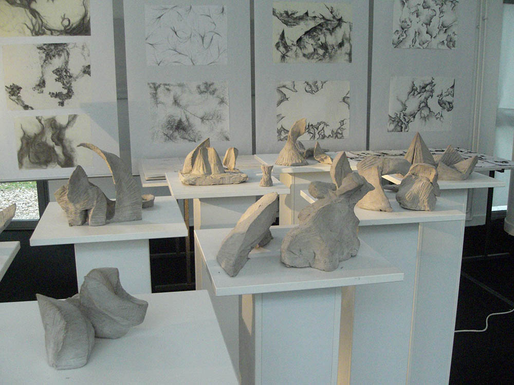 Bien que le modelage soit avant tout une affaire d’accumulation de matière, il peut être utile de commencer par le principe de retrait propre à la taille de pierre, car il oblige à penser la forme différemment et permet d'exploiter le geste pour la dynamique qu'il renferme.