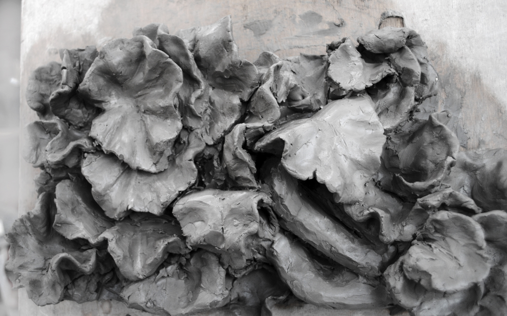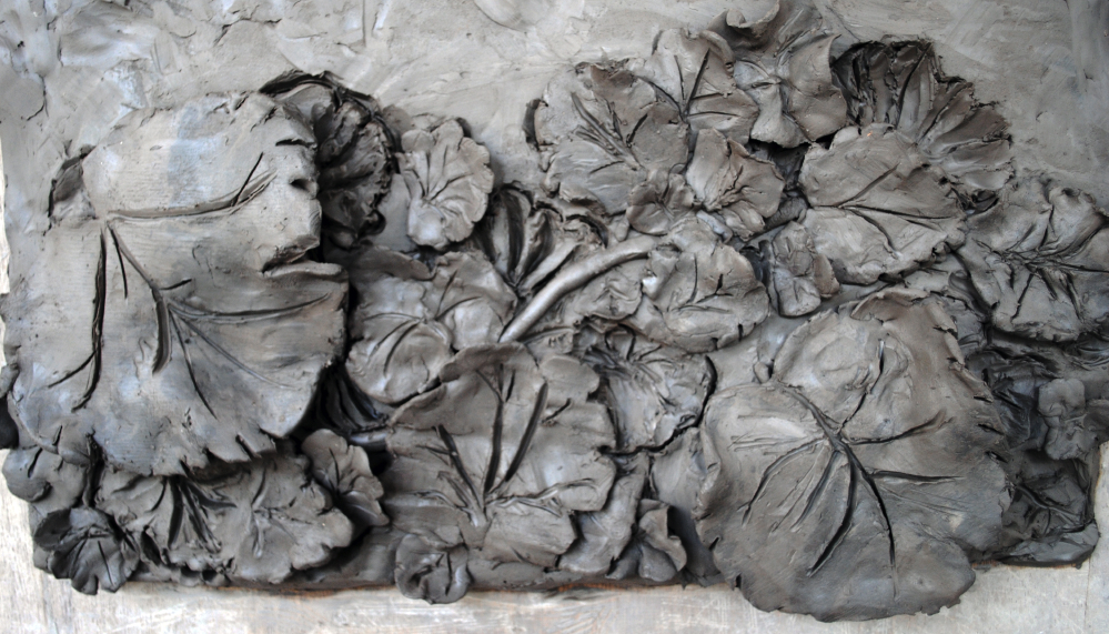 Réalisés par les élèves de Mise à Niveau de mon collègue Marc Lopez-Bernal, il s'agissait de transposer en bas-relief des feuilles de géranium, ce qui constitue la meilleur introduction possible à la sculpture ornementale (d'autres plantes conviendraient).